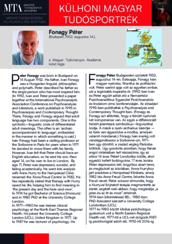 UNSPECIFIED (2024) Külhoni magyar tudósportrék. Fónagy Péter (Budapest, 1952. augusztus 14.). HÍRLEVÉL. MAGYAR TUDOMÁNYOS AKADÉMIA MAGYAR TUDOMÁNYOSSÁG KÜLFÖLDÖN ELNÖKI BIZOTTSÁG, 14 (7). pp. 8-11.