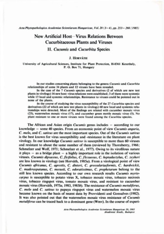 Horváth, József (1985) New Artificial Host-Virus Relations Between Cucurbitaceous Plants and Viruses II. Cucumis and Cucurbita species. ACTA PHYTOPATHOLOGICA ACADEMIAE SCIENTIARUM HUNGARICAE, 20 (3-4). pp. 253-266. ISSN 0001-6780