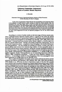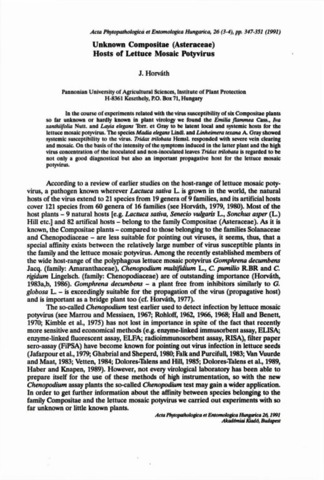 Horváth, József (1991) Unknown Compositae (Asteraceae) Hosts of Lettuce Mosaic Potyvirus. ACTA PHYTOPATHOLOGICA ET ENTOMOLOGICA HUNGARICA, 26 (3-4). pp. 347-351. ISSN 0238-1249