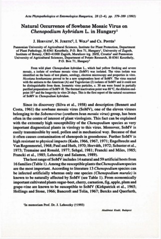 Horváth, József and Juretic, N and Wolf, I and Pinter, C (1993) Natural Occurrence of Sowbane Mosaic Virus on Chenopodium hybridum L. in Hungary. ACTA PHYTOPATHOLOGICA ET ENTOMOLOGICA HUNGARICA, 28 (2-4). pp. 379-389. ISSN 0238-1249