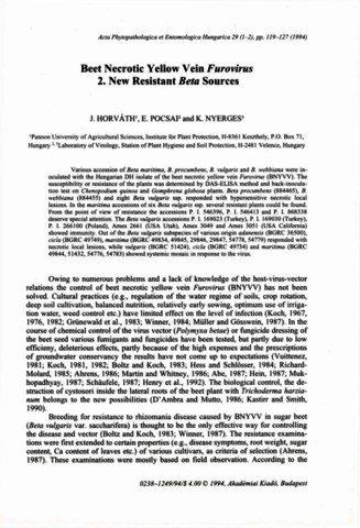Horváth, József and Pocsa, E and Nyerges, K (1994) Beet Necrotic Yellow Vein Furovirus 2. New Resistant Beta Sources. ACTA PHYTOPATHOLOGICA ET ENTOMOLOGICA HUNGARICA, 29 (1-2). pp. 119-127. ISSN 0238-1249