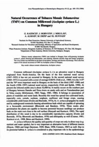 Kazinczi, Gabriella and Horváth, József and Mikulás, József and Almási, Asztéria and Ekés, M and Hunyadi, K (1999) Natural Occurence of Tobacco Mosaic Tobamovirus (TMV) on Common Milkweed (Asclepias syriaca L.) in Hungary. ACTA PHYTOPATHOLOGICA ET ENTOMOLOGICA HUNGARICA, 34 (3). pp. 169-176. ISSN 0238-1249