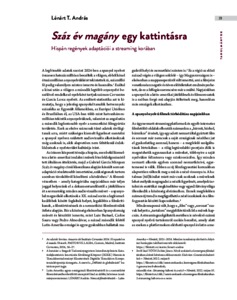Lénárt, András (2025) Száz év magány egy kattintásra : Hispán regények adaptációi a streaming korában. MAGYAR MŰVÉSZET: A MAGYAR MŰVÉSZETI AKADÉMIA ELMÉLETI FOLYÓIRATA, 13 (4). pp. 23-31. ISSN 2064-3799
