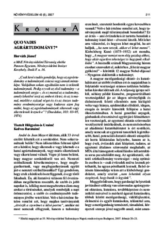 Horváth, József (2007) Quo vadis agrártudomány? NÖVÉNYVÉDELEM, 43 (5). pp. 211-213. ISSN 0133-0829
