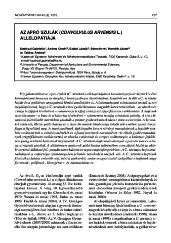 Kazinczi, Gabriella and Onofri, A and Szabó, L and Béres, Imre and Horváth, József and Takács, András Péter (2009) Az apró szulák (Convolvulus arvensis L.) allelopátiája. NÖVÉNYVÉDELEM, 45 (6). pp. 297-304. ISSN 0133-0829