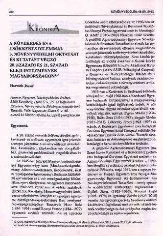 Horváth, József (2012) A növekedés és a csökkenés dilemmái 3. Növényvédelmi oktatást és kutatást végző 20. századi és 21. század elejei intézmények Magyarországon. NÖVÉNYVÉDELEM, 48 (6). pp. 282-293. ISSN 0133-0829