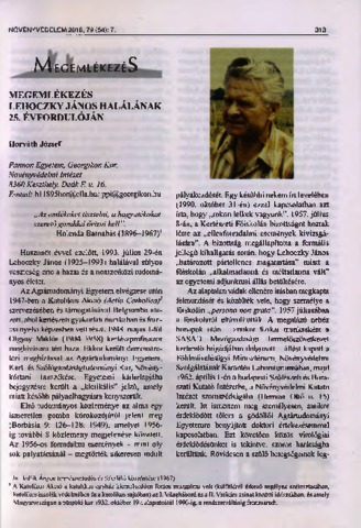 Horváth, József (2018) Megemlékezés Lehoczky János halálának 25. évfordulóján. NÖVÉNYVÉDELEM, 54 (7). pp. 313-315. ISSN 0133-0829