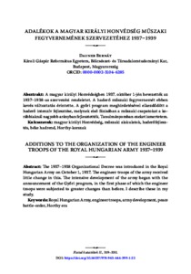| Uncontrolled Keywords: | magyar királyi Honvédség, műszaki alakulatok, haderőfejlesztés, béke hadrend, Horthy-korszak, Royal Hungarian Army, engineer troops, army development, peace battle-order, Horthy era |