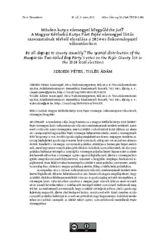 Szegedi, Péter and Tislér, Ádám (2025) Minden kutya vármegyei közgyűlésbe jut? A Magyar Kétfarkú Kutya Párt Fejér vármegyei listás szavazatainak térbeli eloszlása a 2024-es önkormányzati választásokon = Do all dogs go to county asembly? The spatial distribution of the Hungarian Two-tailed Dog Party’s votes on the Fejér County list in the 2024 local elections. TÉR ÉS TÁRSADALOM, 39 (3). pp. 158-178. ISSN 0237-7683
