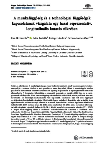 Kun, Bernadette and Paksi, Borbála and Eisinger, Andrea and Demetrovics, Zsolt (2025) A munkafüggőség és a technológiai függőségek kapcsolatának vizsgálata egy hazai reprezentatív, longitudinális kutatás tükrében. MAGYAR PSZICHOLÓGIAI SZEMLE, 79 (4). pp. 791-816. ISSN 0025-0279