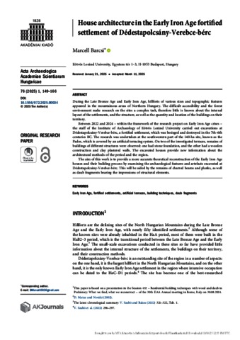 Barcsi, Marcell (2025) House architecture in the Early Iron Age fortified settlement of Dédestapolcsány-Verebce-bérc. ACTA ARCHAEOLOGICA ACADEMIAE SCIENTIARUM HUNGARICAE, 76 (1). pp. 149-166. ISSN 0001-5210