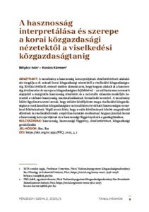 A tanulmány a hasznosság koncepciójának elmélettörténeti alakulá-sát vizsgálja a 18. századi korai közgazdasági nézetektől a viselkedési közgazdaságta-nig. Kritikai értékelő, elemző módon rámutat arra, hogy hogyan alakult át a hasznos-ság értelmezése és szerepe a közgazdaságtan fejlődésével – az utilitarizmus normatív alapjaitól a marginális hasznosság elméletén és a racionális választás modelljén ke-resztül a várható hasznosság maximalizálásának formalizált keretévé. A tanulmány külön figyelmet szentel annak, hogy miként kérdőjelezte meg a viselkedési közgazda-ságtan a neoklasszikus közgazdaságtan racionalitásra és várható hasznosságra vonat-kozó feltételezéseit. Végül arra is kitér, hogy a valós körülmények között megvalósuló döntések és viselkedésformák empirikus kutatási eredményei hogyan járultak hozzá a hasznosság koncepciójának és a hasznossági függvényeknek a gazdagításához.
