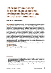 Az intézményi minőség javítása elengedhetetlen a fejlődő országok gazdasági növekedéséhez. Ez a tanulmány a Kenyai Központi Bankot esettanulmányként használja az intézményi minőségmenedzsmenti és önértékelési modellek közszféra teljesítményére gyakorolt hatásának értékeléséhez. Az ISO 9001:2015 keretrendszer felhasználásával a tanulmány olyan alapelvekre összpontosított, mint a vezetés, az érdekelt felek bevonása, a folyamatszemlélet és a folyamatos fejlesztés. Az 51 válaszadó által szolgáltatott felmérési adatokat korrelációs és regressziós technikákkal elemeztük. Az eredmények azt mutatják, hogy bár számos minőségmenedzsmenti gyakorlat korrelál a teljesítmény javulásával, a vezetői elkötelezettség az egyetlen statisztikailag szignifikáns előrejelző tényező. Az önértékelési modellek, ha beágyazódnak a szervezeti kultúrába és hatékony vezetés támogatja őket, jelentősen hozzájárulnak a szolgáltatásnyújtáshoz és a stratégiai összehangoláshoz. A tanulmány kiemeli a vezetés kulcsfontosságú szerepét, és gyakorlati útmutatást nyújt a közintézmények minőségének javításához.