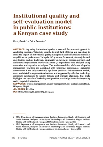 Korir, Gerald and Benedek, Petra (2025) Institutional quality and self-evaluation model in public institutions: a Kenyan case study. PÉNZÜGYI SZEMLE/PUBLIC FINANCE QUARTERLY (1963-), 71 (3). pp. 116-135. ISSN 0031-496X