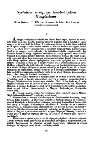 Kara, György and U. Kőhalmi, Katalin and Róna-Tas, András (1958) Nyelvészeti és néprajzi tanulmányúton Mongóliában. MAGYAR TUDOMÁNY, 3(65) (8-9). pp. 305-328. ISSN 0025-0325