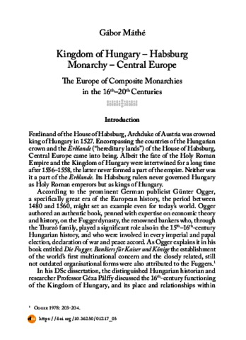 Máthé, Gábor (2024) Kingdom of Hungary - Habsburg Monarchy - Central Europe : The Europe of Composite Monarchies in the 16th–20th Centuries. In: The Evolution of the European States. Ludovika Egyetemi Kiadó, Budapest, pp. 105-159. ISBN 9789636530723