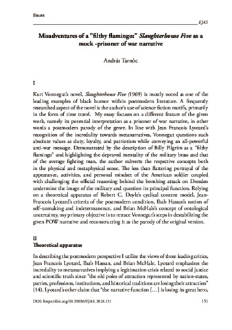 Tarnóc, András (2024) Misadventures of a ”filthy flamingo:” Slaughterhouse Five as a mock -prisoner of war narrative. EGER JOURNAL OF AMERICAN STUDIES, 18. pp. 151-159. ISSN 1786-2337