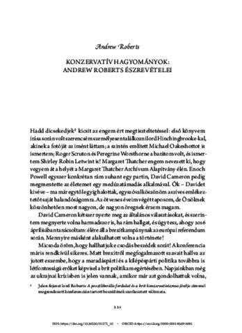 Roberts, Andrew (2025) Konzervatív hagyományok. In: A posztliberális fordulat és a konzervativizmus jövője. Ludovika Egyetemi Kiadó, pp. 221-226. ISBN 9789636532253; 9789636532246
