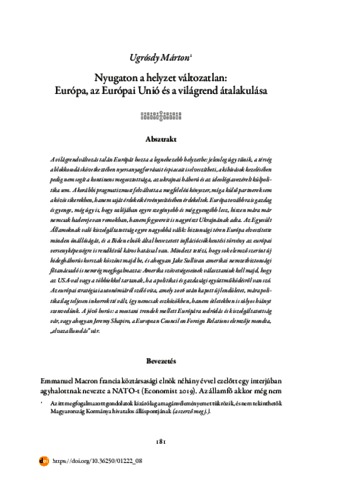 Ugrósdy, Márton (2025) Nyugaton a helyzet változatlan: Európa, az Európai Unió és a világrend átalakulása. In: Átalakuló világrend: Az unipoláris pillanat vége? Ludovika Egyetemi Kiadó, Budapest, pp. 181-207. ISBN 9789636530860