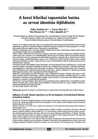Fábry, Szabolcs and Torzsa, Péter and Tim, Dornan and Eőry, Ajándék (2025) A korai klinikai tapasztalat hatása az orvosi identitás fejlődésére = Influence of early clinical experience on the development of professional identity of medical students. ORVOSI HETILAP, 166 (41). pp. 1611-1621. ISSN 0030-6002