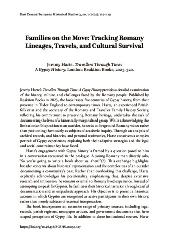 Guszmann, Gergely (2025) Families on the Move: Tracking Romany Lineages, Travels, and Cultural Survival : Jeremy Harte. Travellers Through Time: A Gypsy History. London: Reaktion Books, 2023, 320. KELET-KÖZÉP-EURÓPAI TÖRTÉNELMI TANULMÁNYOK, 3 (1). pp. 117-119. ISSN 30040981