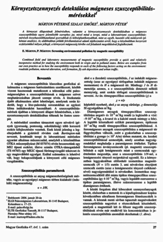 Márton, Péterné and Szalay, Emőke and Márton, Péter (2006) Környezetszennyezés detektálása mágneses szuszceptibilitás-mérésekkel. MAGYAR GEOFIZIKA, 47 (1). pp. 27-30. ISSN ISSN 0025-0120
