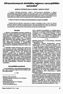 A környezet állapotának felmérésében, valamint a környezetszennyezés detektálásában a mágneses szuszceptibilitás egyre jelentősebb szerephez jut, mivel mind a terepi, mind a laboratóriumi szuszceptibilitás - mérések összehasonlíthatatlanul gyorsabbak és költséghatékonyabbak, mint az egyéb, hasonló célú módszerek (pl. kémiai analízis). Az alábbiakban példák felvillantásával adunk tájékoztatást arról, hogy a közelmúltban beszerzett eszközeinkkel milyen jellegű, a környezeti mágnesség körébe eső feladatok megoldásával foglalkoztunk.