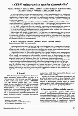 A mélyszerkezet-kutató szeizmikus hálózatban mért CEL07 szelvény adatainak kiegészítésével, bejelölésének átvizsgálásával, újraszerkesztésével és értelmezésével kapott eredmények a szelvény menti szerkezetek megismeréséhez új adatokat adtak. A Keleti-Alpok és a Pannon-medence tektonikai szerkezetének kutatása egyre újabb ismereteket eredményez. A szerzők az utóbbi években kialakult képet vázolják és egészítik ki a CEL07 újbóli értelmezésének adataival. A Kőszeg-Rohonci-hegység és környékének penninikumi korú kibúvásaitól DNy-ra jutó szelvényből a KőszegRohonci kiemelkedés Ny-i folytatására lehet következtetni, amely a Tauem tektonikai ablak irányába esik. Ezt a nyúlványt (vagy gerincet) a felső kéregben az izosebesség-vonalak 4-6 km-es kiemelkedése mutatja. A Cseh tömb, a Balaton-vonal közelében (fúrásokból ismert) paleozoós kiemelkedések táján, továbbá a metamorf medencealjzatú Tisza egység szakaszán is a felsőkéregbeli izosebesség-vonalak feldomborodnak. Az Északi-Mészkő-Alpok, a Dunántúli-középhegység fiatal üledékekkel takart folytatása és a Száva egység mezozoós része alatt a felső kéreg izosebesség-vonalai elmélyülnek. A kéreg-köpeny határ mélysége a szelvény mentén a Cseh tömb alatt 35 km, a Központi-Alpok alatt 35-38 km, a P elsői és a Száva egységek alatt 27-28 km táján várható. A Közép-magyarországi vonaltól DK-re eső szelvényrészen a középső kéregben az izosebesség-szintek ugrásszerűen emelkednek, és valószínűnek látszik, hogy a Tisza egység sebességképe jelentősen eltér a szelvény többi részétől. A kéreg-köpeny határ a sebességugrással összhangban kisebb, kb. 25 km mélység körül lehet.