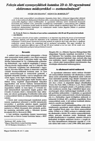 Nyári, Zsuzsanna and Neducza, Boriszláv (2007) Felszín alatti szennyeződések kutatása 2D és 3D egyenáramú elektromos módszerekkel - esettanulmányok. MAGYAR GEOFIZIKA, 48 (3). pp. 117-127. ISSN ISSN 0025-0120