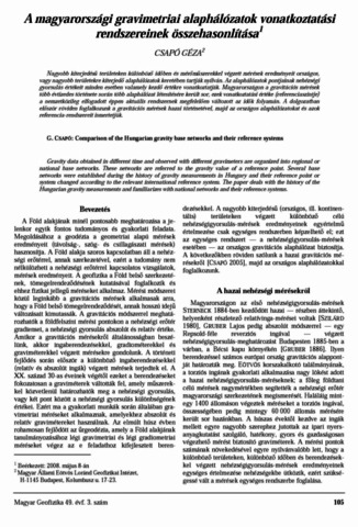 A magyarországi gravimetriai alaphálózatok vonatkoztatási rendszereinek összehasonlítása