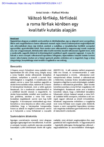 Antal, István and Raffael, Mónika (2024) Változó férfikép, férfiideál a roma férfiak körében egy kvalitatív kutatás alapján. KAPOCS, 7 (1-2). pp. 78-84. ISSN 1588-7227