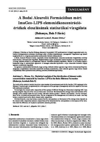 Andrássy, László and Maros, Gyula (2011) A Bodai Aleurolit Formációban mért ImaGeo-LIPS elemoxidkoncentráció-értékek eloszlásának statisztikai vizsgálata (Bakonya, Bak-5 fúrás). MAGYAR GEOFIZIKA, 52 (2). pp. 62-78. ISSN ISSN 0025-0120