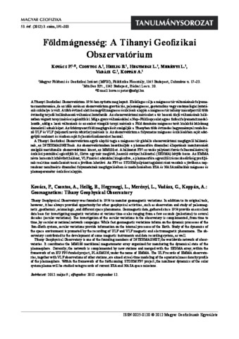 Kovács, Péter and Csontos, András and Heilig, Balázs and Hegymegi, László and Merényi, László and Vadász, Gergely and Koppán, András (2012) Földmágnesség: A Tihanyi Geofizikai Obszervatórium. MAGYAR GEOFIZIKA, 53 (3). pp. 191-203. ISSN ISSN 0025-0120