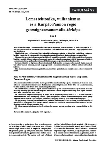 Kiss, János (2014) Lemeztektonika, vulkanizmus és a Kárpát-Pannon régió geomágneses anomália-térképe. MAGYAR GEOFIZIKA, 55 (2). pp. 51-81. ISSN ISSN 0025-0120