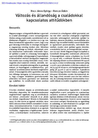 Bocz, János György and Bencze, Ádám (2024) Változás és állandóság a családokkal kapcsolatos attitűdökben. KAPOCS, 7 (3-4). pp. 14-26. ISSN 1588-7227