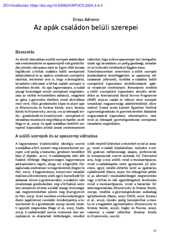 Orosz, Adrienn (2024) Az apák családon belüli szerepei. KAPOCS, 7 (3-4). pp. 41-55. ISSN 1588-7227