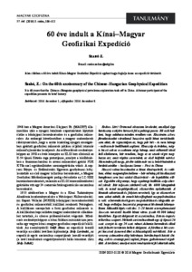 Jelen cikkben a 60 éve indult Kínai–Magyar Geofi zikai Expedíció egykori tagja foglalja össze az expedíció történetét.