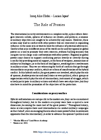 Cîrdei, Ionuț Alin and Ispas, Lucian (2025) The Role of Proxies. In: Hybrid Warfare Reference Curriculum Volume II. Ludovika Egyetemi Kiadó, Budapest, pp. 45-67. ISBN 9789636531065