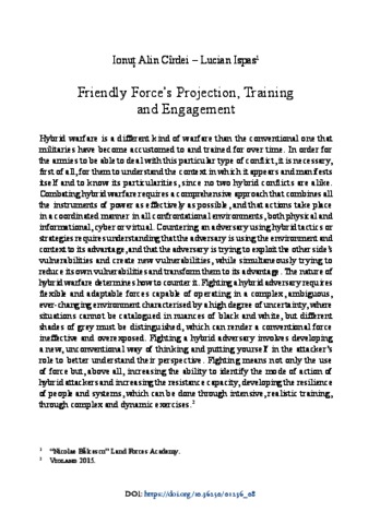 Cîrdei, Ionuț Alin and Ispas, Lucian (2025) Friendly Force’s Projection, Training and Engagement. In: Hybrid Warfare Reference Curriculum Volume II. Ludovika Egyetemi Kiadó, Budapest, pp. 145-165. ISBN 9789636531065