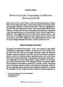 Dolan, Andrew (2025) Biosecurity State : Responding to Malicious Biosecurity Risks. In: Hybrid Warfare Reference Curriculum Volume II. Ludovika Egyetemi Kiadó, Budapest, pp. 131-144. ISBN 9789636531065