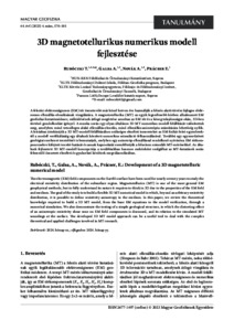 A felszíni elektromágneses (EM) tér összetevőit már közel hetven éve használják a felszín alatti térrész fajlagos elektromos ellenállás-eloszlásának vizsgálatára. A magnetotellurika (MT) az egyik legszélesebb körben alkalmazott EM geofizikai kutatómódszer, működésének átfogó megértése azonban az EM tér és a közeg tulajdonságai okán, 3D-ben történő gondolkodást igényel. A munka során egy olyan általános 3D MT numerikus modell felállítását valósítottuk meg, amelyben mind tetszőleges alakú ellenállás-eloszlás, mind ellenállás-anizotrópia számítására lehetőség nyílik. A leírásban áttekintjük a 3D MT-modell felállításához szükséges elméleti ismereteket az EM fi zikát leíró egyenletektől a modell verifi kálásáig egy általunk készített numerikus szimuláció felhasználásával. Továbbá egy egyszerűsített geológiai szerkezet tesztelését is bemutatjuk, melyben egy anizotróp ellenállással rendelkező nyírózóna EM térkomponensekre kifejtett torzító hatását és annak kapcsolatát szemléltetjük a felszínen szimulált MT-mérésekkel. Az általunk fejlesztett 3D MT-modell koncepciója a továbbiakban hasznos eszközként szolgálhat az MT-kutatások során felmerülő összetett elméleti és gyakorlati kérdések megválaszolásában.