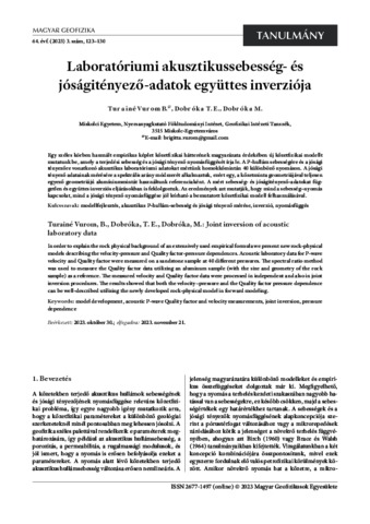 Turainé, Vurom B. and Dobróka, T. E. and Dobróka, M. (2023) Laboratóriumi akusztikussebesség- és jóságitényező-adatok együttes inverziója. MAGYAR GEOFIZIKA, 64 (3). pp. 123-130. ISSN ISSN 0025-0120