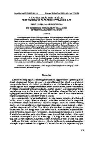 Hajdú, Zoltán and Pálné Kovács, Ilona (2018) A Magyar Királyság területi fenntarthatóságának kihívásai 1918-ban. FÖLDRAJZI KÖZLEMÉNYEK, 142 (4). pp. 373-386. ISSN 0015-5411
