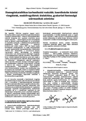 Skodáné Földes, Rita and Kollár, László (2007) Homogénkatalitikus karbonilezési reakciók: koordinációs kémiai vizsgálatok, modellvegyületek átalakítása, gyakorlati fontosságú származékok szintézise. MAGYAR KÉMIAI FOLYÓIRAT - KÉMIAI KÖZLEMÉNYEK (1997-), 113 (4). pp. 169-176. ISSN 1418-9933