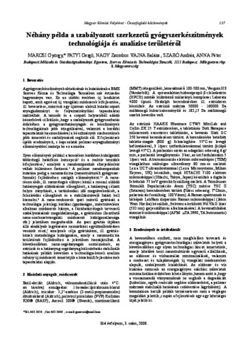 Marosi, György and Patyi, Gergő and Nagy, Zsombor Kristóf and Vajna, Balázs and Szabó, András and Anna, Péter (2008) Néhány példa a szabályozott szerkezetű gyógyszerkészítmények technológiája és analízise területéről. MAGYAR KÉMIAI FOLYÓIRAT - KÉMIAI KÖZLEMÉNYEK (1997-), 114 (3). pp. 137-140. ISSN 1418-9933
