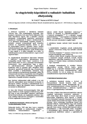 M. Nagy, Noémi and Kónya, József (2011) Az elegykristály-képződéstől a radioaktív hulladékok elhelyezéséig. MAGYAR KÉMIAI FOLYÓIRAT - KÉMIAI KÖZLEMÉNYEK (1997-), 117 (2-3). pp. 69-73. ISSN 1418-9933