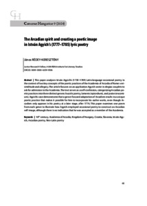 This paper analyses István Agyich’s (1730–1789) Latin-language occasional poetry in the context of two key concepts of the poetic practices of the Academia of Arcadia of Rome: verisimilitude and allegory. The article focuses on an application Agyich wrote in elegiac couplets to ask for admission to the Academia. The text serves as a self-confession, categorizing Arcadian poetic practices into three distinct genres: bucolic poetry, laments (epicedium), and praise (encomium). Agyich’s case demonstrates that a genre-focused adaptation of Arcadism results in a unique poetic practice that makes it possible for him to incorporate his earlier works, even though Arcadism only appears in his poetry at a later stage, after 1776. This paper examines one poem from each genre to illustrate how Agyich employed occasional poetry to construct an Arcadian self-image, although there is no indication that he was accepted as a member of the Academia.