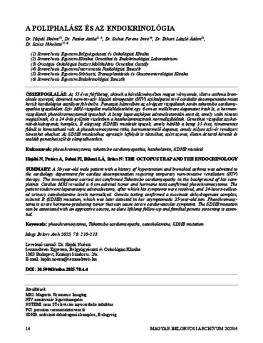 Hajdú, Noémi and Patócs, Attila and Suhai, Ferenc Imre and Bihari, László and Szücs, Nikolette (2025) A poliphalász és az endokrinológia = The octopus trap and the endocrinology. MAGYAR BELORVOSI ARCHIVUM, 78 (4). pp. 210-213. ISSN 0133-5464