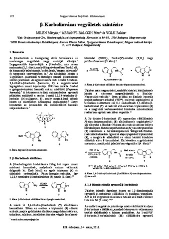 Milen, Mátyás and Ábrányi-Balogh, Péter and Volk, Balázs (2016) β-Karbolinvázas vegyületek szintézise. MAGYAR KÉMIAI FOLYÓIRAT - KÉMIAI KÖZLEMÉNYEK (1997-), 122 (2-4). pp. 172-178. ISSN 1418-9933