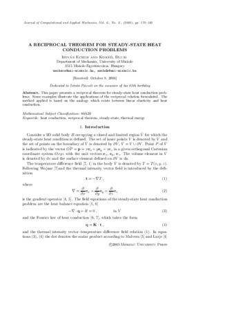 | Uncontrolled Keywords: | heat conduction, reciprocal theorem, steady-state, thermal energy |
